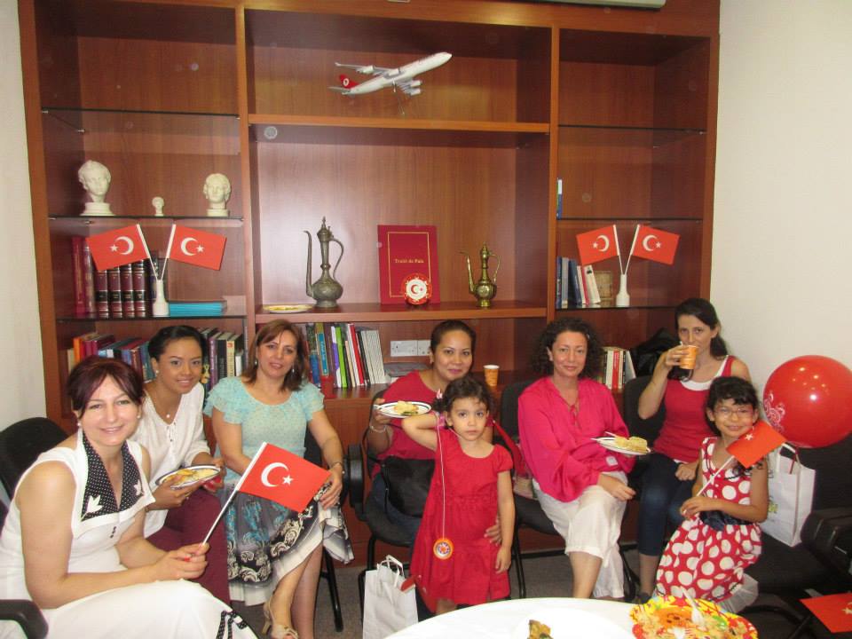 Etkinlik kutlamasına büyükelçimiz olmak üzere bir çok sivil vatandaş ve kamu görevlisi katıldı.Türk bayrakları ile süslenen Konsolosluk binasında muhteşem bir organizsoyonla 23 nisan kutlandı.Gazetemizin Uluslar arası ilişkiler ve Dış Temsilcilikler sorumlusu görevini de yürüten Ayşe Samiha Hanımefendi de kızı ile birlikte etkinlikte çocuklar gibi eğlendi.