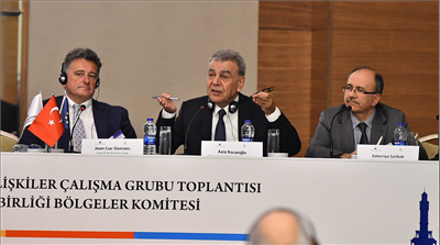 Toplantının önemli bir gündemi de Türkiye’nin AB üyeliği oldu. Komite üyesi Heinz Lehmann’ın Türkiye’nin doğusu ile batısı arasındaki farklılıkları öne sürerek, “tam üyelik” yerine “stratejik ortaklık” statüsünün gündeme alınması önerisine karşı çıkan İzmir Büyükşehir Belediye Başkanı Aziz Kocaoğlu, “Türkiye büyük bir ülke. Bölgesel farklılıklar varsa da, ülkemizin doğusundan batısına, kuzeyinden güneyine AB’ye girecek potansiyele sahip olduğuna inanıyorum. ‘Stratejik ortaklık’ yerine diğer ülkeler gibi ‘tam üye’ olma görüşünü savunuyorum” dedi.