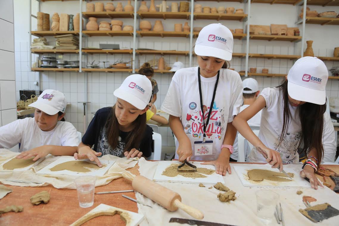 Büyükşehir Belediyesi ESMEK Yaz Okulları bünyesinde açılan seramik kursu ile öğrenciler hayal güçlerini toprakla birleştirerek birbirinden güzel ve başarılı eserler üretiyorlar. Büyükşehir Belediyesi Opera Binası arkasında bulunda ESMEK Eğitim Merkezi’nde açılan seramik atölyelerinde çocukların sanatla tanışması, estetik bakış açısı kazanması, el kaslarının güçlenmesi gibi fiziksel gelişimlerine olanak sağlanıyor. Kendi hayal güçlerini toprakla birleştiren çocuklar eğlenerek öğrenmenin keyfini yaşıyorlar.