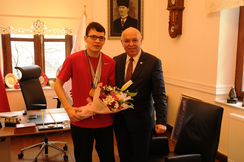 Alanya’da gerçekleştirilen yarı finallerde Tekirdağ’ın gurur olmayı başaran Ataberk Yücel, kazandığı madalyalar ile Süleymanpaşa Belediye Başkanı Ekrem Eşkinat’ı makamında ziyaret etti.