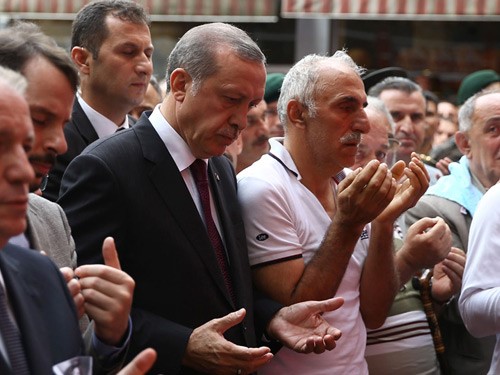 Törende vatandaşlara ve polislere de başsağlığı dileğinde bulunan Cumhurbaşkanı Erdoğan, cenaze namazını şehidin ikizi Mehmet Çamur, kardeşleri Ömer ve Hasan Ali Çamur ile yan yana kıldı. Şehit Ahmet Çamur, daha sonra Soğanlı Mahallesi’ndeki aile mezarlığında toprağa verildi.