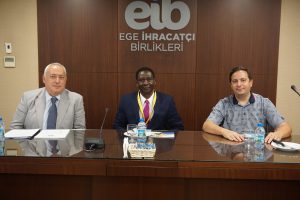 İzmir Enternasyonal Fuarı kapsamında İzmir’e gelen Güney Sudan Canlı Hayvan ve Balıkçılık Bakanı Hon. James Janka Duku ve beraberindeki heyeti Ege İhracatçı Birlikleri’nde ağırlayan Türkiye Su Ürünleri ve Hayvansal Mamuller Sektör Kurulu Başkanı Sinan Kızıltan ve Ege Su Ürünleri ve Hayvansal Mamuller İhracatçıları Birliği Başkanı Bedri Girit, Güney Sudan ile işbirliği seçeneklerini masaya yatırdı.