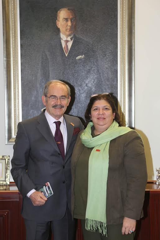 Venezuela Bolivar Cumhuriyeti merhum Cumhurbaşkanı Hugo Rafael Chaves Frias’ı anma etkinlikleri çerçevesinde 6 Mart Cuma günü Eskişehir’de düzenlenecek programlara katılamak üzere şehrimize gelen Venezuela Bolivar Cumhuriyeti Başkonsolosu Tatiana Locia Zapate Bracho, Büyükşehir Belediye Başkanı Prof Dr. Yılmaz Büyükerşen’i ziyaret etti. Türkiye ve Venezuela arasındaki ilişkiler hakkında fikir alışverişinde bulunan başkonsolos,“Venezuela Bolivar Cumhuriyeti merhum Cumhurbaşkanı Hugo Rafael Chaves Frias’ı Eskişehir’de anmak bizler için çok güzel bir duygu. Düzenlenen etkinliklerde bizlere destek veren Büyükşehir Belediye Başkanı Yılmaz Büyükerşen’e teşekkür ediyorum. Eskişehir samimi, güzel aynı zamanda sanat dolu bir şehir, kentte yapılan modern çalışmalar dünyanın neresine giderseniz gidin biliniyor ve örnek alınıyor” dedi.