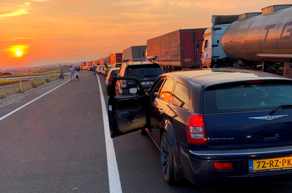 İpsala gümrük kapısına 6 kiliomatre kala otomobil kuyruğu başladı.
