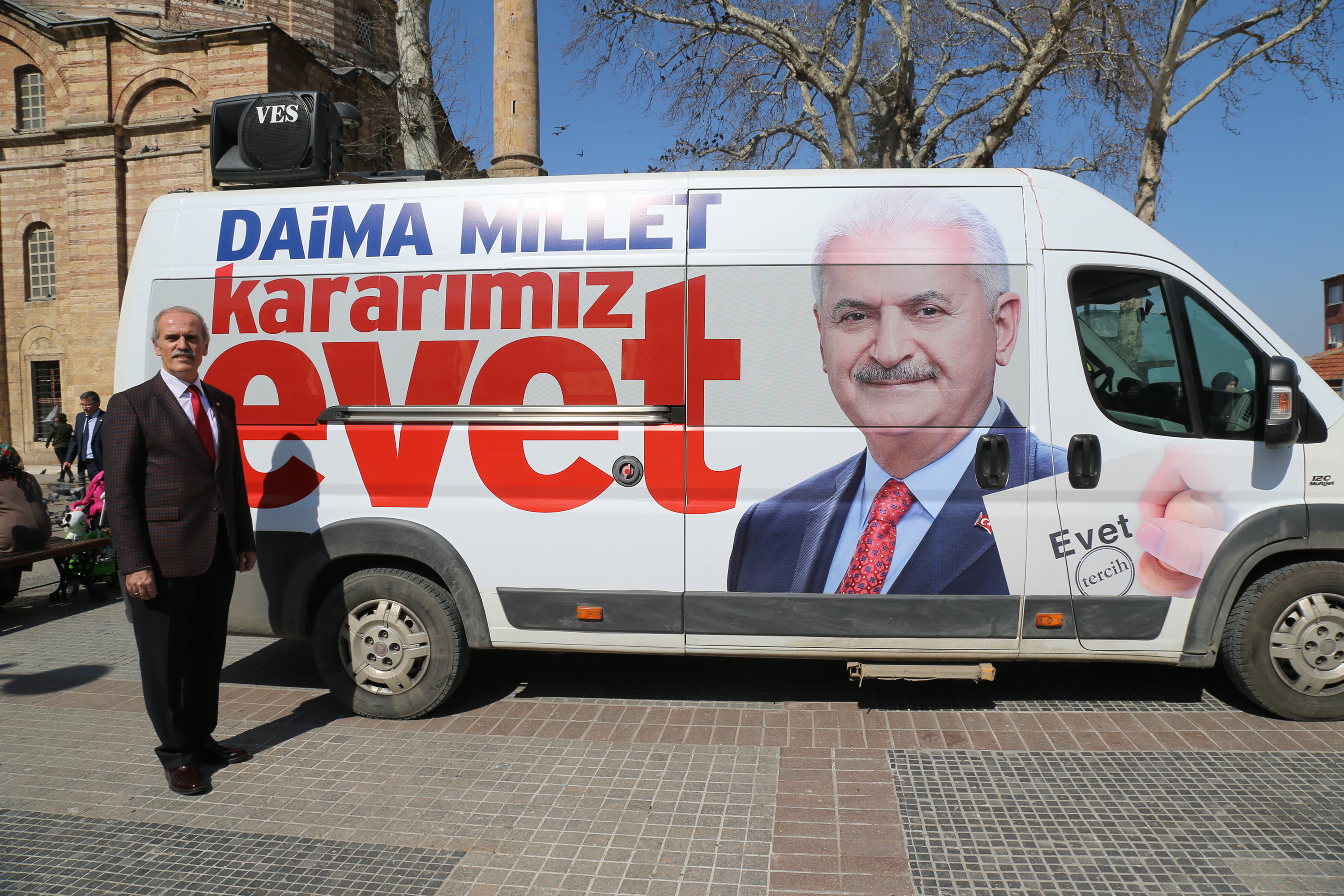 Yıldırım Belediye Başkanı İsmail Hakkı Edebali de açıklamasında, “Dualar yaparak startı veriyoruz. İlçe başkanımız, teşkilatımız ve Büyükşehir Belediye Başkanımız ile birlikte 16 Nisan’a yönelik çalışmalarımızı buradan başlatıyoruz. Biz 16 Nisan referandumunu çocuklarımızın geleceği için, daha güçlü bir Türkiye için, bölgesinde ve dünyada güçlü bir Türkiye için 16 Nisan’da evet kararımızla ülkemizi geleceğe taşıyacak sistemi de beraberinde getireceğine inanan insanlardanız. Evet diyoruz, hayırlı uğurlu olsun” dedi.