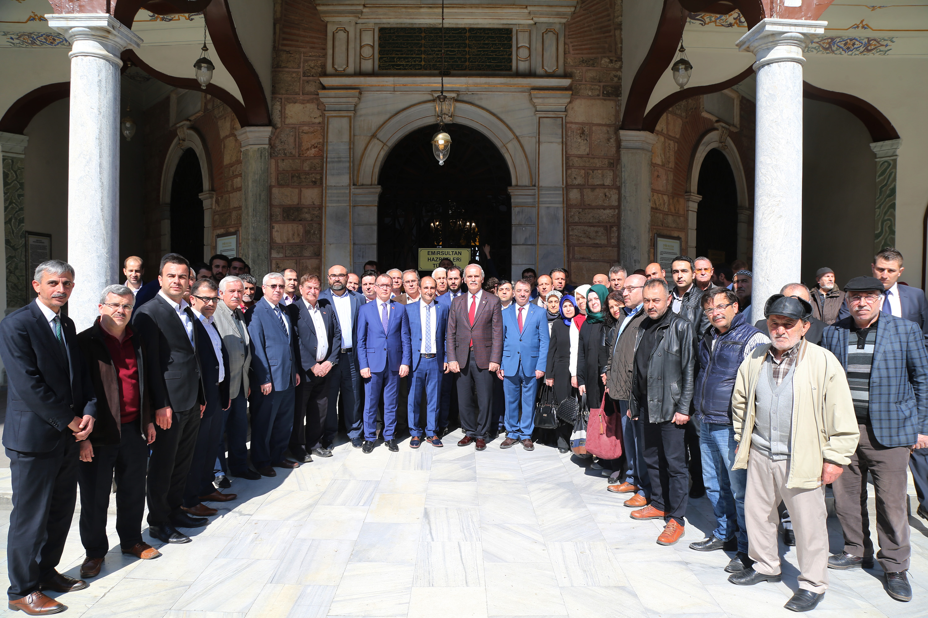 Bursa Büyükşehir Belediye Başkanı Recep Altepe, Yıldırım Belediye Başkanı İsmail Hakkı Edebali ile birlikte ziyaret ettiği Emir Sultan Türbesi’nde önce dua etti, ardından Bursa’da referandum sürecini başlattı.