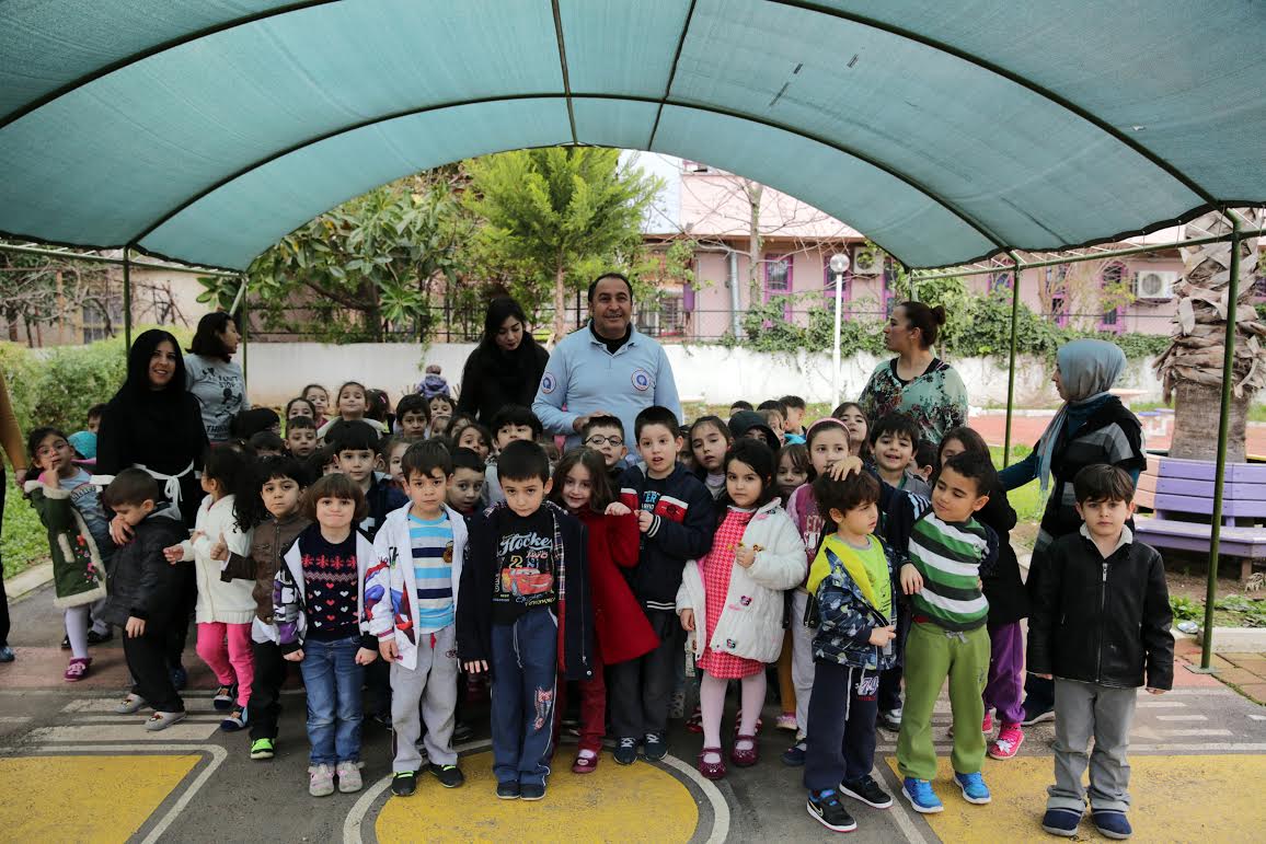 Küçük çocuklara yangın anında neler yapacakları ve nasıl davranacakları uygulamalı olarak anlatıldı. Altuntaş, minikleri ateş ve çakmakla oynamamaları, prizlere dokunmamaları konusunda uyardı. Yangın eğitiminin ardından deprem anında yapılması gerekenler anlatıldı. Miniklere, deprem sırasında uygulanacak hayat üçgeni pozisyonu gösterildi. Büyükşehir Belediyesi İtfaiye Dairesi Başkanlığı tarafından 1 yıl içerisinde ilçeler dahil olmak üzere 20 bine yakın öğrenciye yangın eğitimi verildiği belirtildi.deprem2