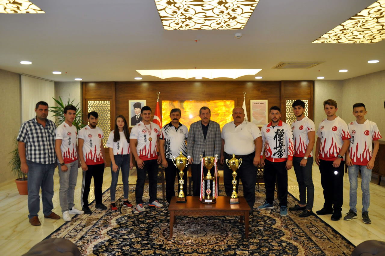 1. Altın Safran Uluslararası Kyokushin şampiyonları Başkan Vergili’yi makamında ziyaret etti.