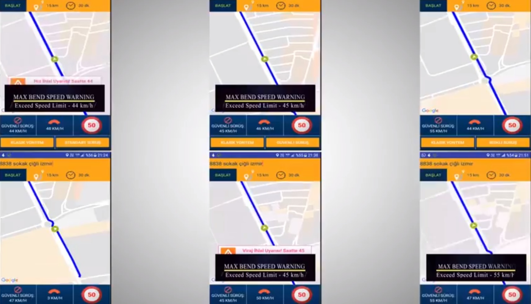 Akıllı telefonlar üzerinde çalışan uygulama sayesinde araç sürücüsü, viraja 400 metre kala hızı konusunda uyarılıyor.