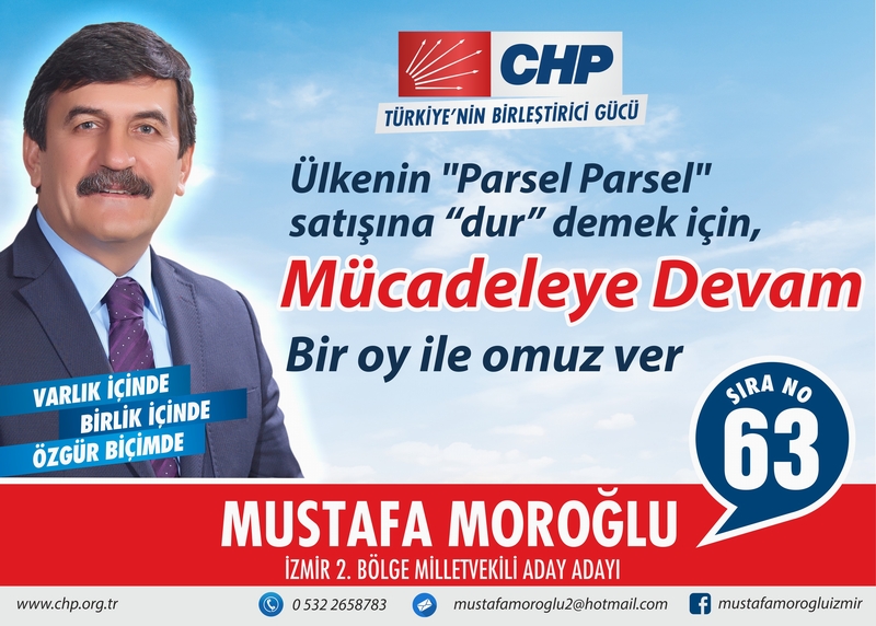 CHP İzmir Milletvekili aday adayı Mustafa Moroğlu adaylık açıklamasında zehir zemberek açıklamalarda bulundu.Kendisini tanıtırken bir dörtlük te söylemeyi ihmal etmedi. Moroğlu’nun açıklamasından kesitler . Değerli Dostlarım,