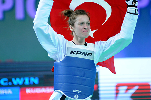 Bayanlar 53 kiloda ülkemizi temsil eden 19 yaşındaki Zeliha Ağrıs, dün yaptığı müsabakalarda sırasıyla Ruandalı, Yunan, Kolombiyalı ve Mısırlı rakiplerini geçerek yarı finale yükselmişti. Yarı finalde Özbekistan’dan Dinorahon Mamadibragimova ilek karşılaşan genç taekwondocu ilk raundunu 5-1 geride tamamladığı maçı son raunddaki müthiş çabasıyla 11-7 kazanmayı başardı ve adını finale yazdırdı. Finalde son Avrupa Şampiyonu Rus Tatiana Kudashova ile karşılaşan Zeliha Ağrıs’ın müsabakası nefesleri kesti. İlk raundu 3-1, ikinci raundu 3-2 geride kapatan Zeliha Ağrıs, müsabakanın son bölümünde 8-6 öne geçmeyi başardı. Rus sporcu, bitime 5 saniye kala 8-8 eşitliği yakalasa da son saniyede rakibinin kafasına tekmeyle 3 puan kazanan Zeliha Ağrıs, rakibini 11-8 yenerek Dünya şampiyonu oldu.