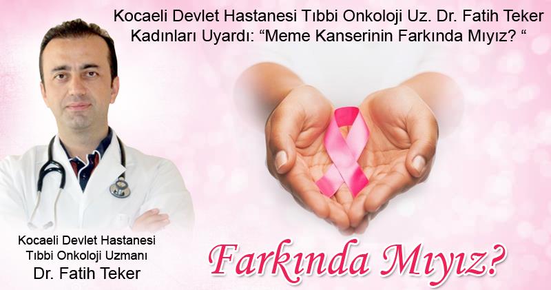 Meme kanserinin son yıllarda daha genç yaşlarda görülmeye başlaması ve sıklığının artmasına dikkat çeken Kocaeli Devlet Hastanesi Tıbbi Onkoloji Uz. Dr. Fatih Teker 1-31 ekim tarihleri arasında yer alan meme kanseri farkındalık ayı kapsamında önemli açıklamalarda bulundu.