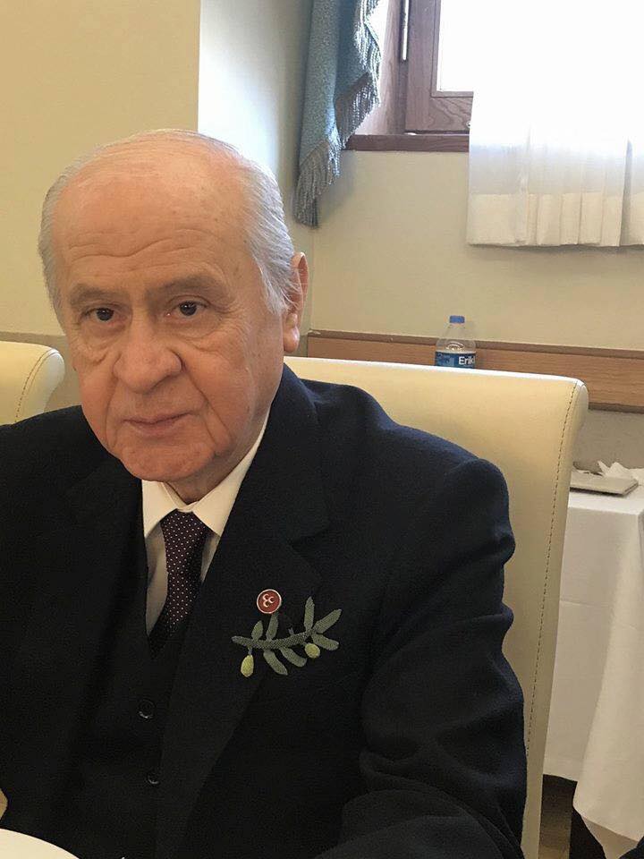 Burada MHP Çamlıyayla  ilçe başkanı Ali Rıza Genç, MHP milletvekilleri Oktay Öztürk ve Baki Şimşek ile  Mersin Büyükşehir belediyesi Başkan vekili Kerim Tufan ile bazı partililer yer aldı. Burada parti  üyesi kadınlar tarafından, Bahçeli’ye iğne oyasından yapılan “zeytin dalı” şeklinde yaka iğnesi hediye edildi. Zeytindallı iğne oyası Bahçeli’nin yakasına takılırken, Bahçeli de çok anlamlı bulduğu bu hediye nedeniyle Çamlıyayla MHP heyetine ve Çamlıyayla’lı kadınlara teşekkür etti.