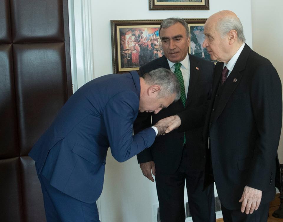 MHP Genel Başkanı Devlet Bahçeli,  Ankara’da TBMM Grup Toplantısı’nın ardından, Meclis’teki makamında, MHP  Çamlıyayla İlçe Başkanlığı üyelerini kabul etti.