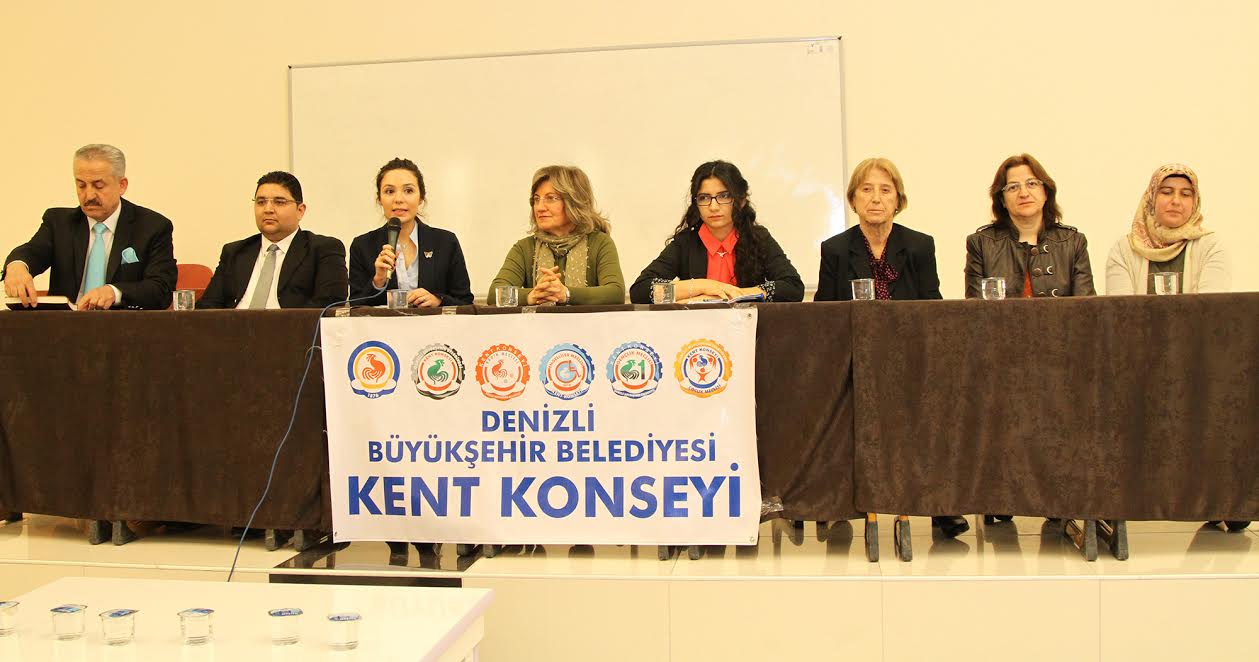Denizli Büyükşehir Belediyesi Kent Konseyi Genel Sekreteri Baran Akın da, Kent Konseyi’nin işleyişi hakkında katılımcılara bilgi verdi. Genel Sekreter Akın, “Kent Konseyi şehirde yaşayan insanların kentlilik bilincinin gelişmesi, hemşehrilik hukukunun artması, yerinden yönetimin, katılımcılığın ve şeffaflığın sağlanması, sosyal yardımlaşma ve dayanışmanın gerçekleşmesi gibi amaçları olan çok geniş kapsamlı bir kuruluş” diyerek, yoğun katılımın olduğu her iki ilçede Kent Konseyinin çalışmaları, kuruluş aşaması ve meclisler hakkında bilgi verdi.konsey2