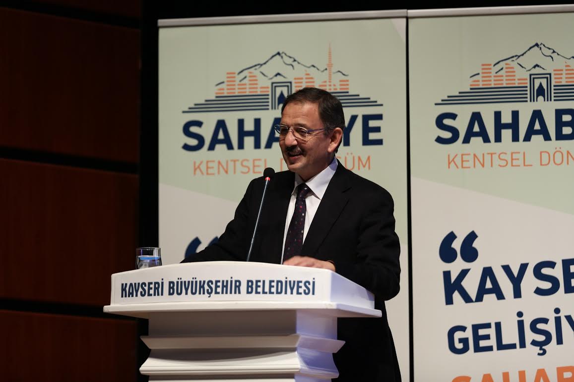 Büyükşehir Belediye Başkanı Mehmet Özhaseki de konuşmasında Sahabiye’nin şehrin en kıymetli yerlerinden biri olduğunu; ancak pek çok nedenle değersizleştiğini söyledi. Buradaki binalara bu halleriyle Türkiye’nin hiçbir vilayetinde mesken ruhsatı verilemeyeceğini vurgulayan Başkan Özhaseki, “Buradaki evler zamanın en güzel evleriydi; ama şimdi kullanılamaz hale geldi. Altyapısıyla, üst yapısıyla sıkıntılı bir durumda. Değersizleşti. Bir an önce dönüşüm projesine başlayarak şehrin en kıymetli merkezini, en değerli hale getirmemiz lazım. Bu amaçla işe Sahabiye’den başlıyoruz. Bu bölgenin dışında da birçok mahalle var; ama örnek olması açısından işe buradan başlıyoruz” dedi. Projede 25-30 tane yüksek katlı bina olacağını ve yaklaşık 50-60 bin metrekareye oturacak bu binaların dışında kalan 450 bin metrekareye yeşil alan, sosyal tesis, cadde ve yollar yapacaklarını dile getiren Başkan Mehmet Özhaseki, Sahabiye’nin Kayseri’nin en güzel semti haline geleceğini kaydetti.