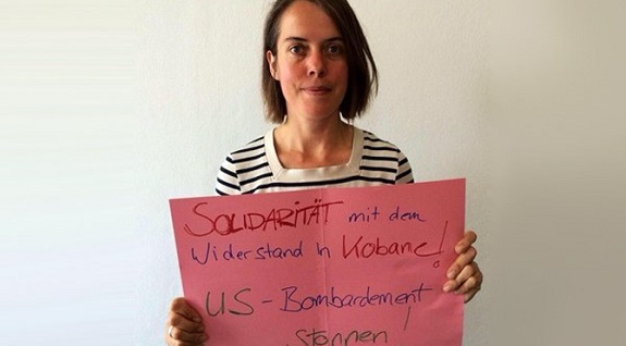 Sol Partis Barış Sözcüsü olan Christine Buchholz, Facebook üzerinden paylaştığı pankarta, “Kobani’deki direnişle dayanışma- ABD bombardımanı durmalı yazdı. Milletvekilinin pankartı Sol Parti’de soğuk duş etkisi yaparken; parti içinden tepkiler geldi.
