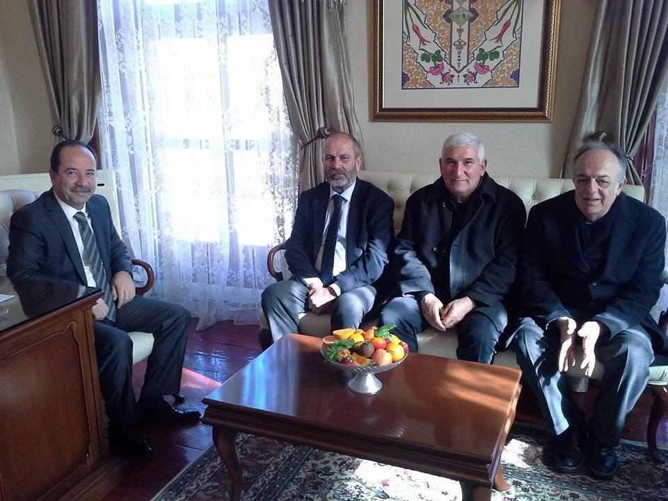 Türk Mühendis ve Mimar Odaları Birliği Yönetim Kurulu Başkanı Mehmet Soğancı, Makina Mühendisleri Odası Başkanı Ali Ekber Çakar, Jeoloji Mühendisleri Odası Başkanı Hüseyin Alan, Makina Mühendileri Odası Edirne Şubesi Başkanı Yaver Tetik ve beraberindeki yönetim kurulu üyelerinden oluşan heyet, Edirne Belediye Başkanı Recep Gürkan’ı ziyaret ederek, Edirne için ortak fikir alışverişinde bulunarak, bir süre sohbet ettiler.