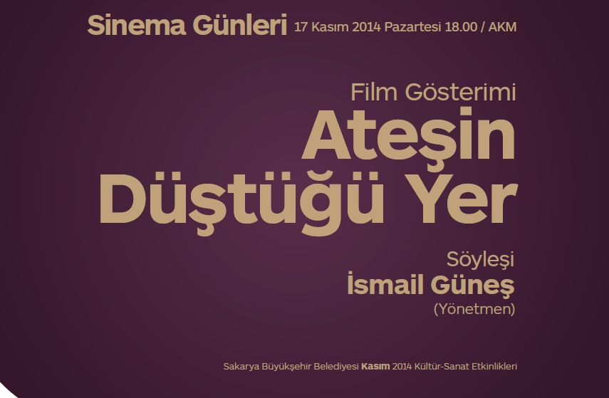 gerçekleştirilecek ‘Ateşin Düştüğü Yer’ film gösterimi ve filmin yönetmeni İsmail Güneş söyleşisi