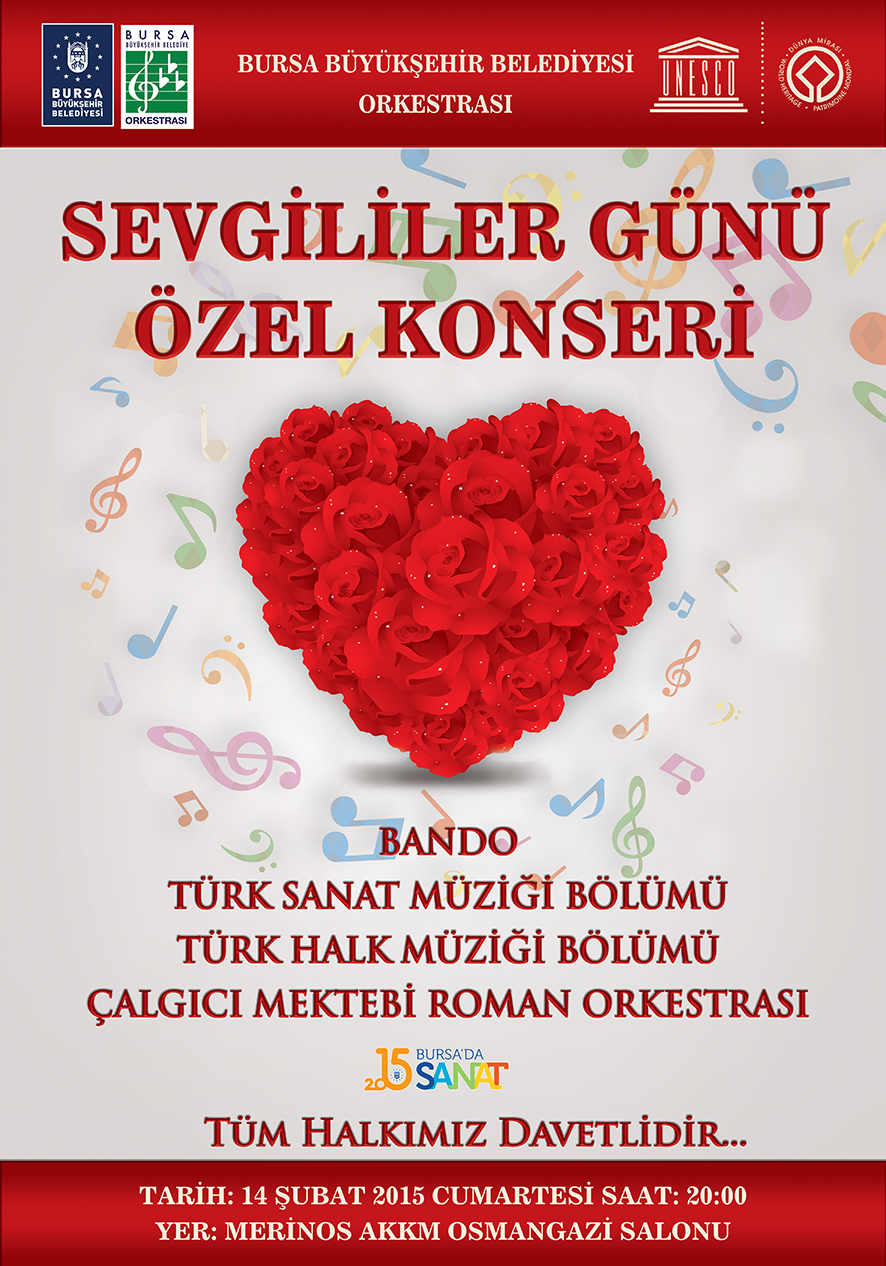Bursa Büyükşehir Belediyesi Orkestrası, ‘Sevgililer Günü Özel Konseri’, 14 Şubat Cumartesi günü gerçekleştirecek.