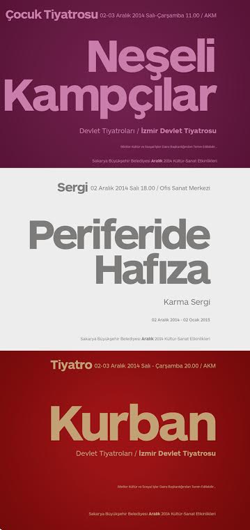 Büyükşehir Belediyesi Aralık Kültür Sanat Etkinlikleri, birbirinden farklı üç program ile 2 Aralık Salı günü başlıyor. İlk olarak saat 11.00’da Neşeli Kampçılar çocuk tiyatrosu ile perdelerini açacak AKM sahnesinde, saat 20.00’da İzmir Devlet Tiyatrosu’nun Kurban isimli oyunu Sakaryalılarla buluşacak. Ofis Sanat Merkezi’nde ise saat 18.00’da, ‘Periferide Hafıza’ isimli Karma Sergi’nin açılışı gerçekleştirilecek.
