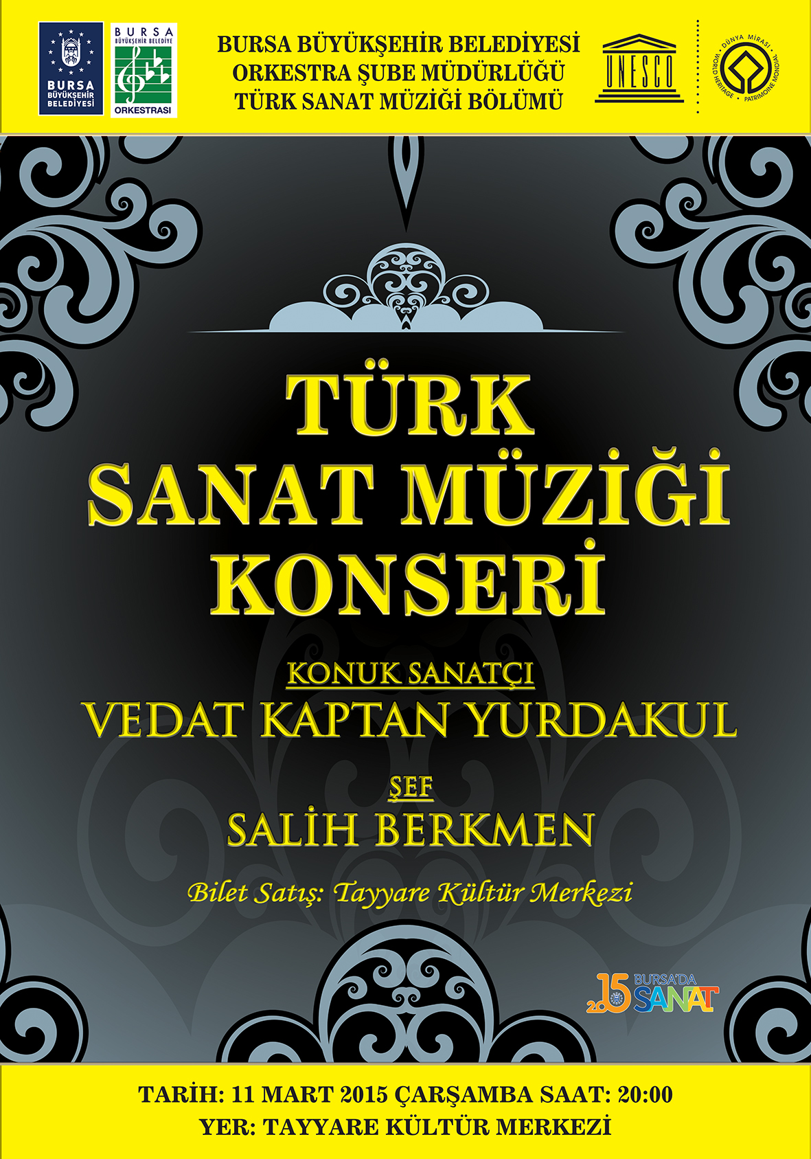 Bursa Büyükşehir Belediyesi Orkestrası Türk Sanat Müziği Bölümü’nün Mart ayı konserine ünlü sanatçı Vedat Kaptan Yurdakul konuk oluyor.