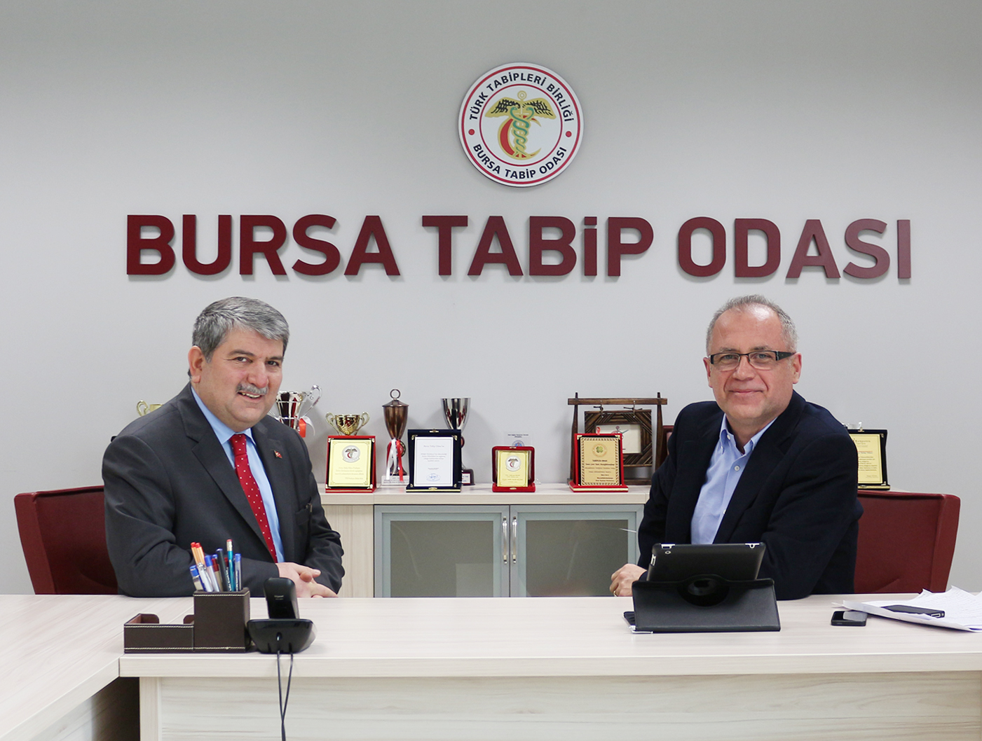 Ak Parti Bursa Milletvekili Aday Adayı Dr. Cemalettin Kani Torun, Bursa Tabipler Odası Başkanı Dr. Ertuğrul Aydın’ı ziyaret etti. Ziyarette, Türkiye’nin sağlık politikaları ve hastanelerde yaşanan sorunlara ilişkin görüş alışverişinde bulunuldu. Dr. Ertuğrul Aydın, sağlık politikalarından maksimum verim alınabilmesi için uygulanabilecek çözüm önerilerine ilişkin görüşlerini aktarırken, Dr. Cemalettin Kani Torun kendi meslek hayatındaki deneyimlerinden hareketle, çözüme yönelik yapılabilecek her düzenlemede meslek odalarının yanında olacağını ifade etti. Bursa Tabipler Odası Başkanı Dr. Ertuğrul Aydın, mesleğin niteliğinin muhafazası için “iyi hekimlere”, iyi hekimlerin yetişmesi için “sağlık sorunlarını bilen” politika yapıcılara ihtiyaç olduğunu söylerken, Dr. Cemalettin Kani Torun, Türkiye’nin sağlık politikalarındaki gelişimin hız kesmeden devam edeceğini, yeni dönemde Bursa için öngörülen sağlık yatırımları ile kentin yaşam kalitesinin artacağını ifade etti.
