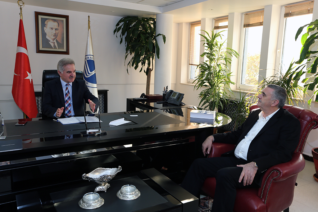 Keleş’in de hazır bulunduğu ziyarette Rektör Elmas’a yeni döneminde başarı dileyen Başkan Toçoğlu,