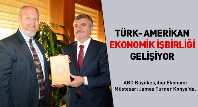 ABD Ankara Büyükelçiliği Ekonomi Müsteşarı James Turner, Konya Büyükşehir Belediye Başkanı Tahir Akyürek’i ziyaret etti. Ziyarette Türkiye ile ABD arasındaki ekonomik işbirliği ile serbest ticaret anlaşması konuşuldu. Çeşitli toplantılara katılmak üzere Konya’ya gelen ABD Ankara Büyükelçiliği Ekonomi Müsteşarı James Turner, Konya Büyükşehir Belediye Başkanı Tahir Akyürek’i ziyaret etti.