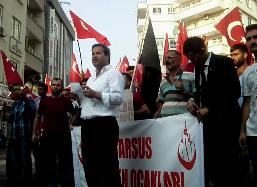 Sık sık sloganlar atan grup adına açıklama yapan Büyük Birlik Partisi (BBP) Tarsus İlçe Başkanı Hasan Köse, “Can pareleri gitmiş, canları gitse ne olur bu saatten sonra. Bütün hainleri öldürseniz  ne olur ki, ne değişir sanki bir annenin, babanın  yüreğine evlat acısını  düşürdükten sonra. Aslında dünyanın  bütün alfabelerini toplasanız, bu acıyı anlatacak veya tarif edecek bir kelime yok. Sadece geride kalanların gözlerinden süzülen yaşların anlatmaya çalıştığı o acı var” ifadelerini kullandı.