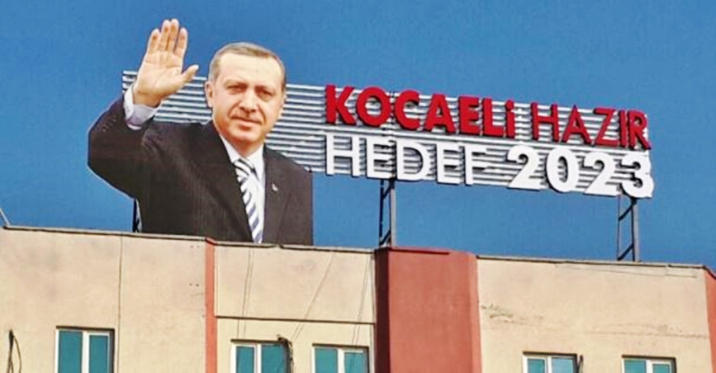 AK Parti İl Başkanlığında yapılan değişikliğe bir yenisi daha eklendi. Parti binasında değişen tabelaların ardından şimdi de Başbakan Erdoğan’ın dev resmi ve Kocaeli Hazır Hedef 2023 yazısı eklendi.
