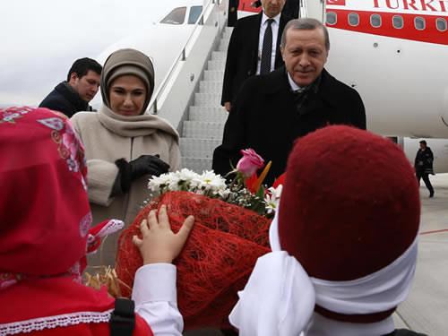 Elazığ Havalimanı’nda Cumhurbaşkanı Erdoğan’ı, Vali Ömer Faruk Koçak, Belediye Başkanı Mücahit Yanılmaz ve diğer ilgililer karşıladı.
