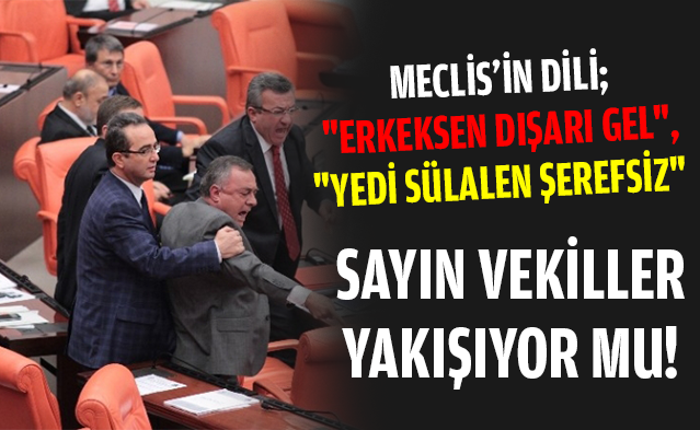 TBMM Genel Kurulu’nda birbirlerinin üzerine yürüyen CHP’li ve AKP’li milletvekillerinin tartışmasında hakaretler havada uçuşurken, “Erkeksen dışarı gel”, “Yedi sülalen şerefsiz” gibi tehditkar cümleler duyuldu. Meclis’te yaşanan gerginliğin ardından oturuma ara verildi.