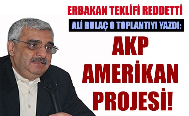 Amerikalılar, ikna edebilselerdi söz konusu projeyi Erbakan hocaya uygulatmayı düşünüyorlardı, ancak o reddetti. Erbakan hoca vefatından önceki son görüşmemizde AK Parti’nin nasıl kurulduğunu uzun uzun anlattı, elindeki bazı belgeleri bana gösterdi; Ertan Yülek Bey şahittir.