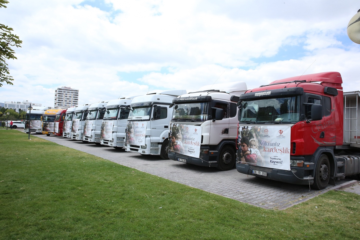 Türkiye Diyanet Vakfı Kayseri Şubesi tarafından fuar alanı yanındaki Ahmet-Ayşe İnci Camii önünden 12 tır dolusu yardım malzemesini Suriye’ye gönderdi. Büyükşehir Belediye Başkanı Mustafa Çelik, son 2,5 yılda 436 tır yardım malzemesi gönderen Kayserili hayırseverlerin övünç kaynağımız olduğunu belirtti ve tüm hayır sahiplerine teşekkür etti.