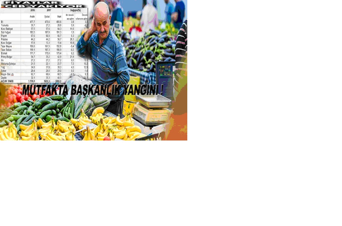 Başkanlık tartışmaları mutfakta yangına yol açtı. AKP iktidarının siyasi ve ekonomik olarak izlediği yanlış politikalar sonucunda mart ayında dört kişilik bir ailenin zorunlu mutfak harcaması yüzde 3,1 oranında artarken, yılın ilk üç aylık dönemindeki toplam artış ise yüzde 10’u geçti.