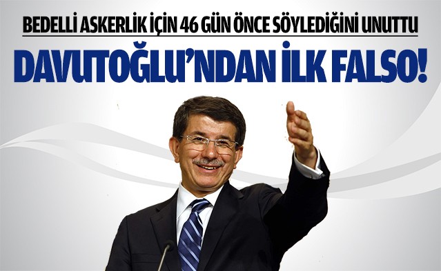 Davutoğlu, “Fakir çocuğunun askerlik yapması, zengin çocuğun bedel ödeyerek askerlik yapmaması olmaz” demişti. Davutoğlu bugün gazetecilerin konu hakkındaki sorularına “Grup toplantımda sürprizlerim var. Dinleyin, bekleyin” dedi. Davutoğlu bu açıklamasının ardından “Bakanlar kurulumuzda, 1 ocak 2015 itibariyle 28 yaşından gün almış olan, 27 yaşını doldurmuş olan vatandaşlarımızın bedelli askerlik imkanı getiriliyor. Bu vatandaşlarımız 18 bin lira ödeme karşılığında askerlik görevlerini yapmış sayılacaklar” dedi.Milli Gazete