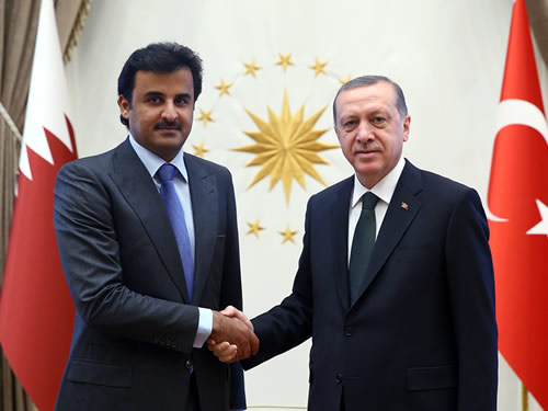 Katar Emiri Şeyh Temim Cumhurbaşkanlığı Sarayı’nda 12 Mart 2015SürmanşetErdoğan, Kataradmin Cumhurbaşkanı Recep Tayyip Erdoğan, Türkiye’ye bir çalışma ziyareti gerçekleştiren Katar Emiri Şeyh Temim bin Hamad Al Sani’yi törenle karşıladı. Karşılama töreninin ardından Cumhurbaşkanı Erdoğan, Katar Emiri Şeyh Temim ile bir süre görüştü.