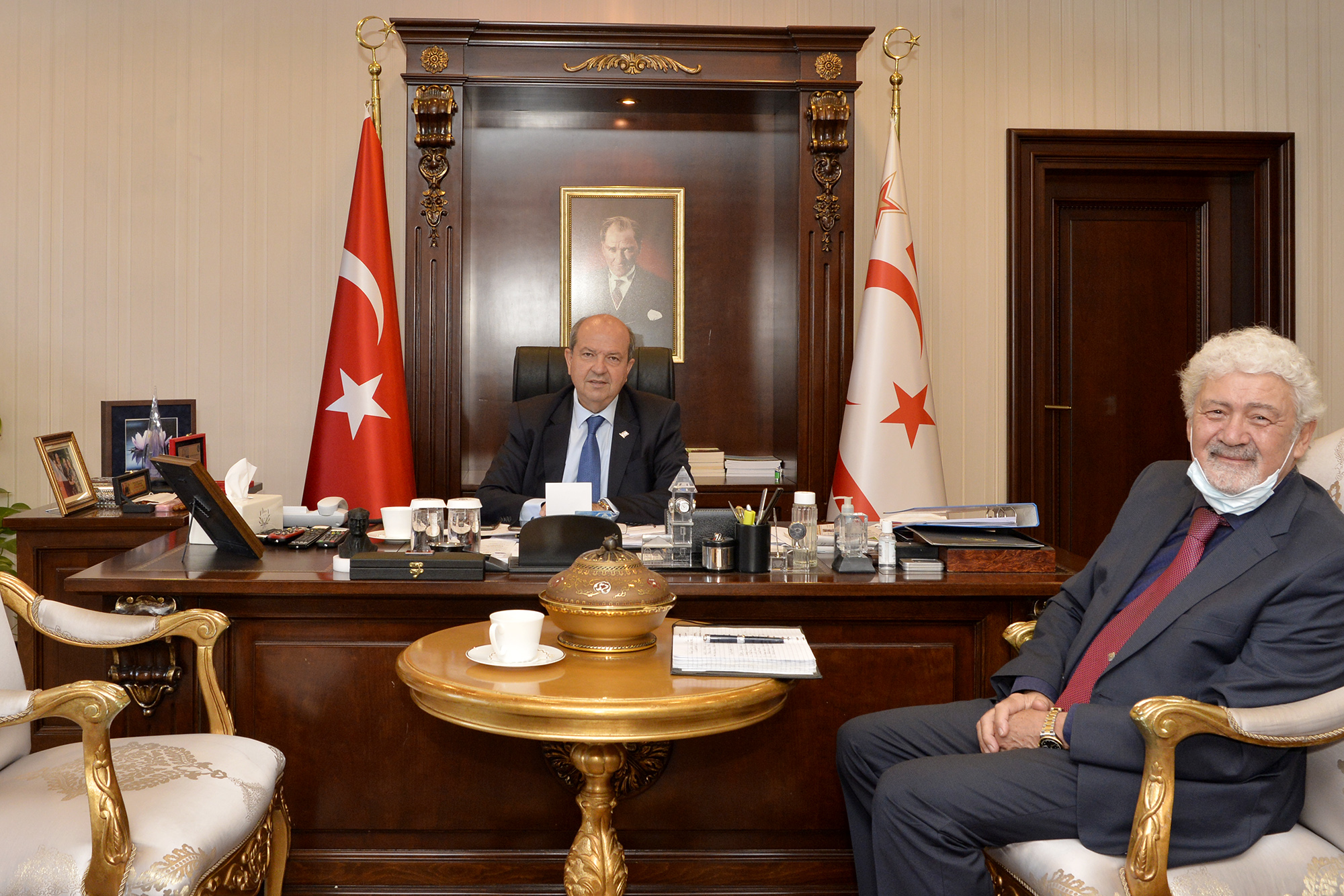 KKTC Cumhurbaşkanı Sayın Ersin Tatar, Kıbrıs İlim Üniversitesi Mühendislik Fakültesi Dekanı Prof. Dr. Ata Atun’u kabul etti.