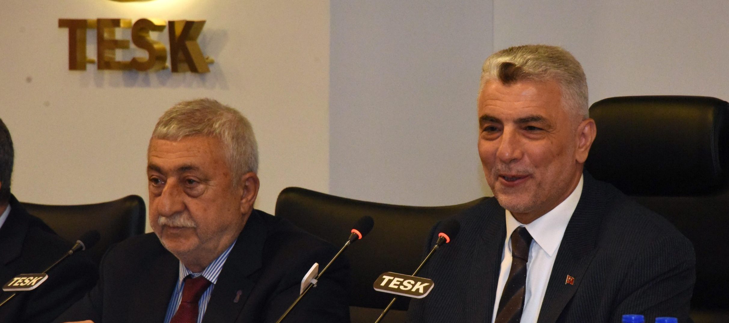 Merkez İşyeri Denetleme ve Danışmanlık Grubu ile Meslek Eğitimini Geliştirme Kurulu Toplantısı Ticaret Bakanı Sn. Ömer Bolat’ın katılımı ile TESK Konferans Salonu’nda gerçekleştirildi. Birlik Başkanları ve Oda Başkanlarının da hazır bulunduğu toplantının açılışında konuşan Türkiye Esnaf ve Sanatkârları Konfederasyonu (TESK) Genel Başkanı Bendevi Palandöken, “Esnaf ve Sanatkarımız enflasyonla mücadelenin kilit noktasıdır. Kendi işini yapamayan ne kadar yatırımcı varsa gıda sektörüne birikti. Öyle bir rant olmuş ki fiyatları kontrol etmek artık mümkün değil. Bir kişinin 10 bin tane işletmesi olursa böyle olur. Ülkede haksız rekabet çok ciddi boyuta ulaştı. Esnafı tezgahtar, çiftçiyi tarlada işçi yaptılar. Tüketici artık enflasyondan illallah etti. Bari bu işletmelerin sigara ve ekmek satmasının önüne geçilsin” dedi.